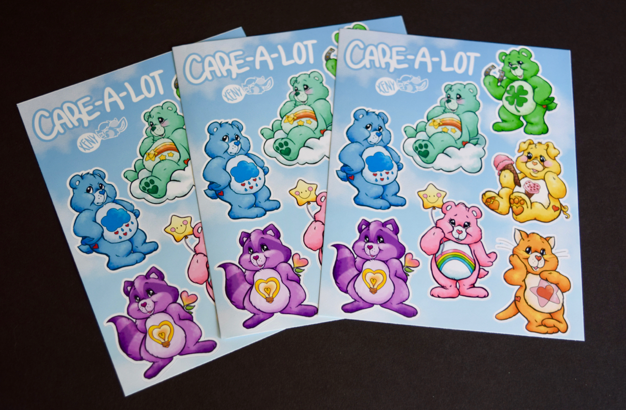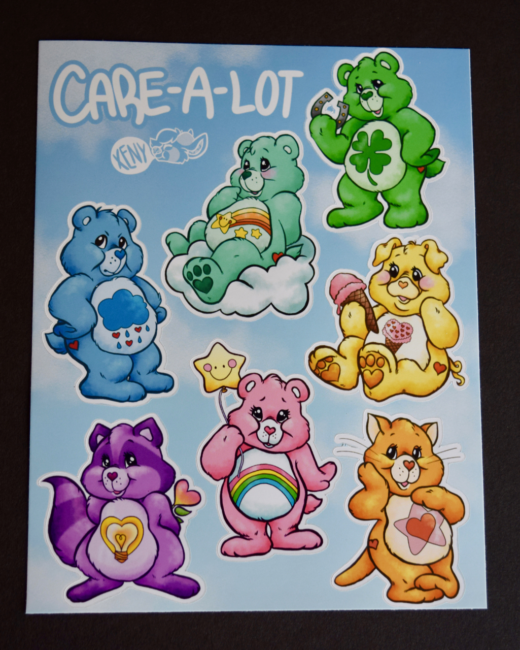 Inspired by some of my favorite vintage designs- a rainbow of Care Bears (+ Cousins)