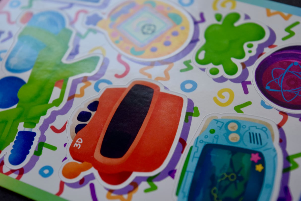 Printed vibrantly on a 3.50" x 4.75" kiss cut sticker sheet with a soft gloss, these are individually cut paper stickers, so NOT waterproof- think of these as those colorful sticker pages you had as a kid!